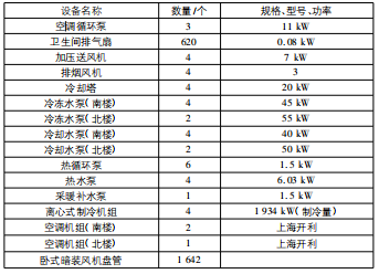 表1暖通空調系統主要設備清單