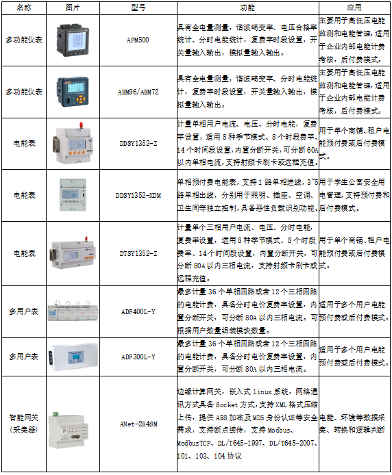 安科瑞針對轉(zhuǎn)供電企業(yè)提供多種電能計(jì)費(fèi)方式,包括單相三相表、單戶單表、多戶表,預(yù)付費(fèi)模式和后付費(fèi)模式均可以靈活切換。另外根據(jù)不同場合用戶需求不同配置不同功能的計(jì)費(fèi)儀表,比如商業(yè)綜合體物業(yè)側(cè)重是電費(fèi)預(yù)收,而高校學(xué)生公寓側(cè)重點(diǎn)是用電安全,做好惡性負(fù)載特征識別。
