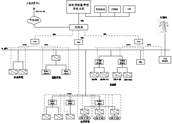 系統通過測控單元與儲能裝置、電池管理系統(BMS)、汽車充電樁、風機逆變器、光伏逆變器進行實時信息的采集和處理,實時采集模擬量、開關量。