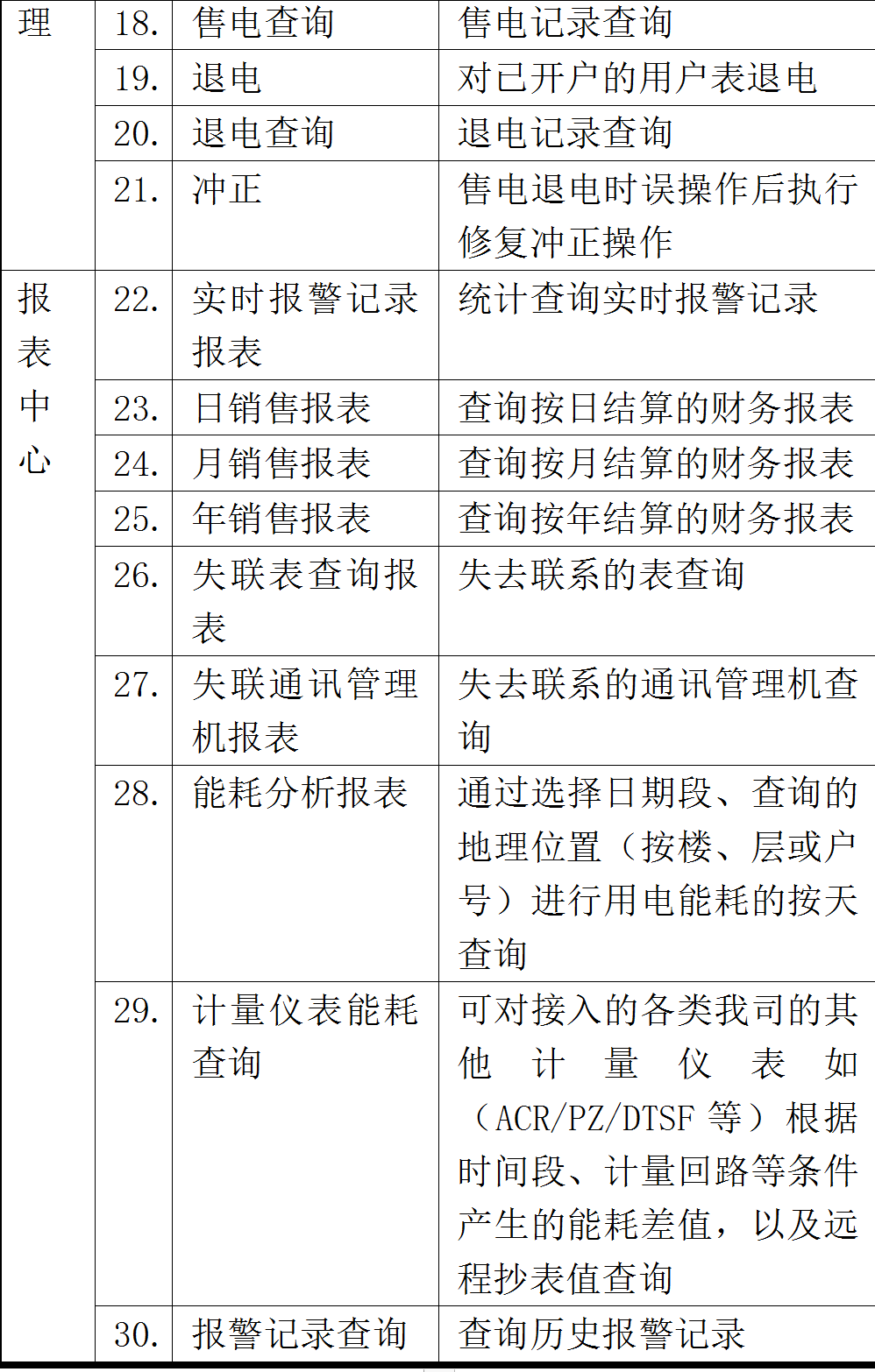 1.電價下發;2.設置下發(下發報警金額閾值和過載功率閾值);3.保電(強制儀表合閘);4.恢復預付費(欠費自動跳閘的模式);5.拉閘(強制斷電);6.抄表導出(導出當前所有表狀態為EXCEL)