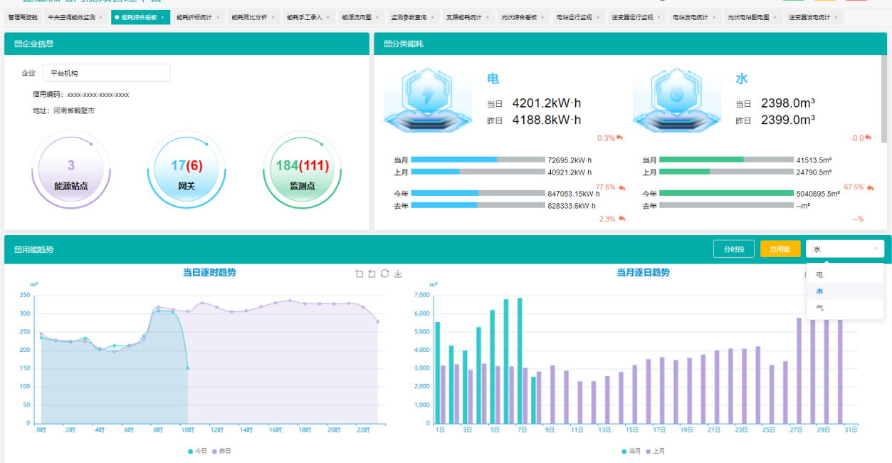 采用先進的網絡抄表付費管理技術,實現電、水、氣等能源綜合計費,實現遠程抄表、費率設置、 賬單統計匯總等,支持微信、支付寶、一卡通等充值支付方式,可設置補貼方案。通過能源付費管理方式,培養用能群體和部門的節能意識。