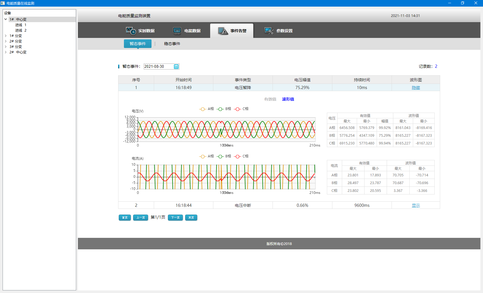 監(jiān)測(cè)微電網(wǎng)重要回路的電壓波動(dòng)與閃變、電壓暫升/暫降、短時(shí)中斷情況,實(shí)時(shí)記錄事件并故障錄波,為電能質(zhì)量分析與治理提供數(shù)據(jù)來源。及時(shí)采取相應(yīng)的措施提高配電系統(tǒng)的可靠性,減少因諧波造成的供電事故的發(fā)生。