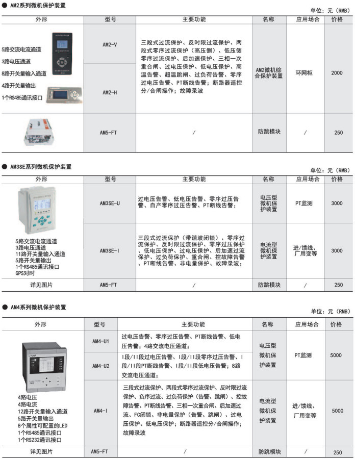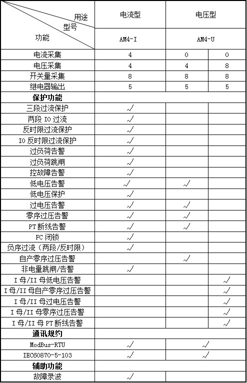 AM系列微機保護測控裝置集保護、測量、控制于一體,適用于35kV及以下電壓等級的用戶終端變電站(所),可實現用戶變電站的保護和測控。